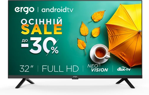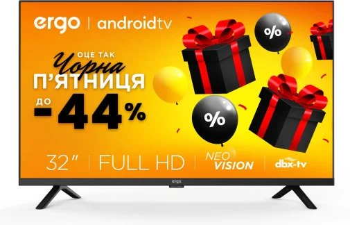 Ergo 32GFS6500 — телевізор у сучасному дизайні, розроблений спеціально для поціновувачів чудової якості та збалансованої вартості. Він оснащений вбудованими динаміками, які подарують неймовірний глибокий звук для повного занурення у світ ТВ.