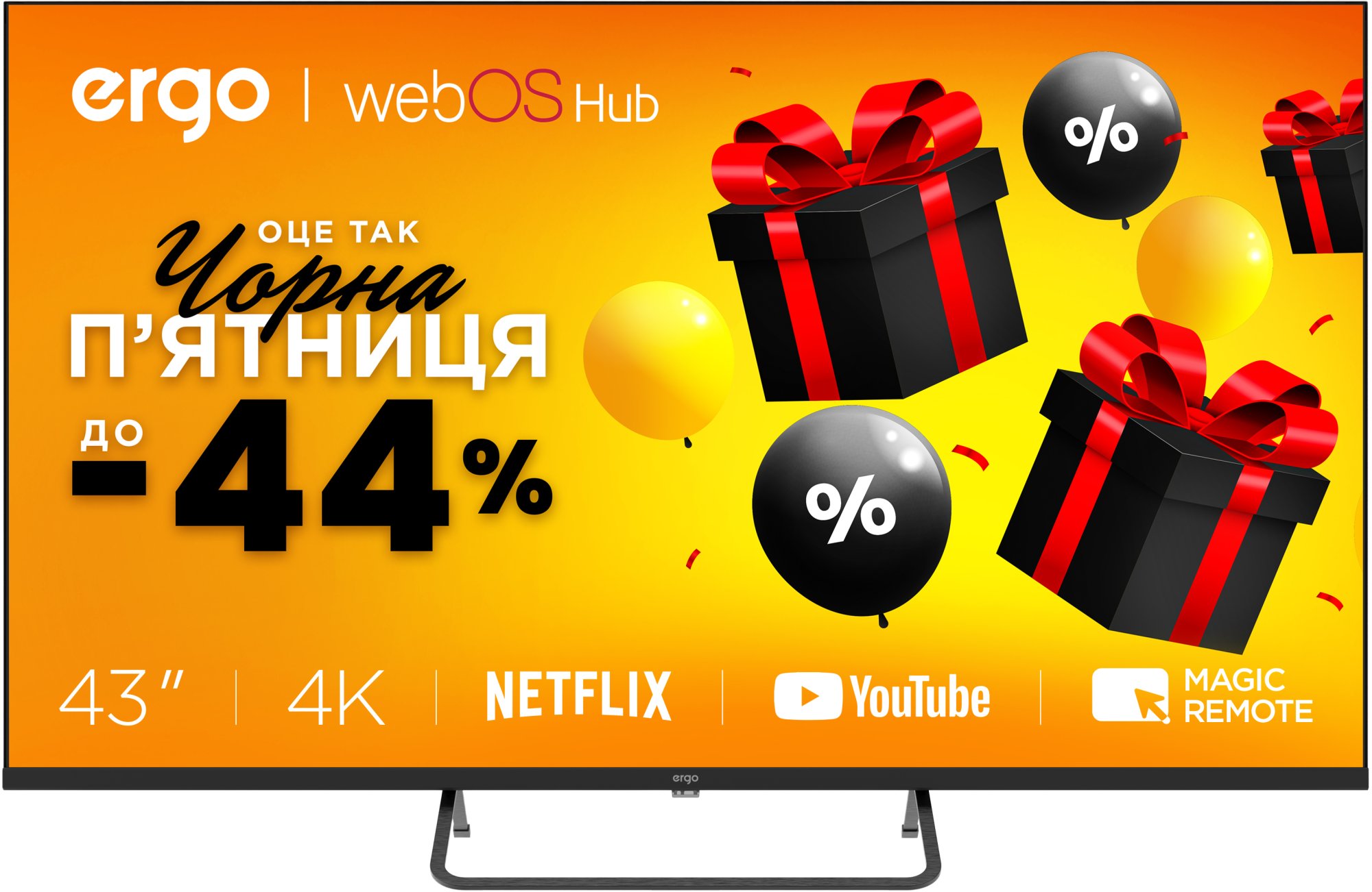 Ergo WUS9200 — телевізор у сучасному дизайні, розроблений спеціально для поціновувачів чудової якості та збалансованої вартості. Він оснащений вбудованими динаміками, які подарують неймовірний глибокий звук для повного занурення у світ ТВ.