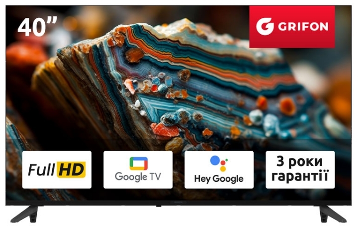 Телевізор Grifon Diva DVFSB є сучасним LED-пристроєм з роздільною здатністю Full HD (1920x1080), що забезпечує чітке та яскраве зображення. Частота оновлення становить 60 Гц, кути огляду — 178°/178°, яскравість — 200 кд/м², час відгуку — 9,5 мс, а контрастність — 5000:1. Процесор зображення G31MP3 оптимізує картинку для комфортного перегляду, а операційна система Google TV робить інтерфейс інтуїтивним і зручним для навігації.