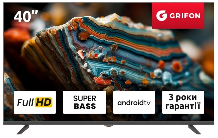Телевізор Grifon Nova NVFSB — це сучасний пристрій від українського бренду, який поєднує в собі високу якість, стильний дизайн. Завдяки 40-дюймовому LED-дисплею з роздільною здатністю Full HD (1920х1080) цей телевізор забезпечує чітке зображення з насиченими кольорами та хорошою контрастністю (5000:1). Яскравість екрана становить 200 кд/м², а кут огляду 178° дозволяє насолоджуватися якісною картинкою з будь-якої точки кімнати. Глянсове покриття екрана додає зображенню глибини, а частота оновлення 60 Гц гарантує плавність відтворення.