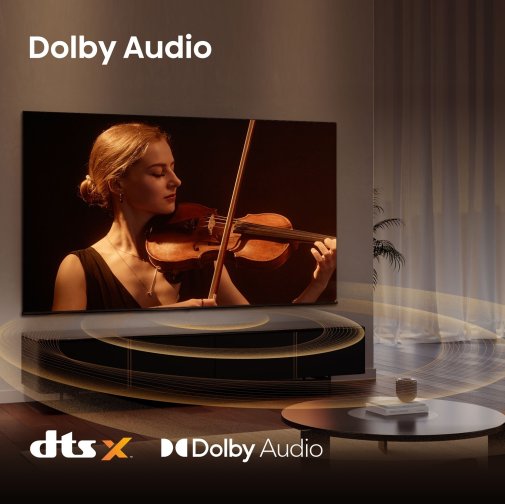 Фільми, серіали, спортивні програми, музика — усе це стає кращим завдяки технологіям DTS Virtual:X і Dolby Audio. DTS Virtual:X дозволяє насолоджуватися багатовимірним звуком незалежно від розміру кімнати чи конфігурації колонок. Завдяки цьому навіть без додаткової акустики звук сприймається об'ємним і деталізованим — чутно кожну репліку, кожен звуковий ефект, не піднімаючи гучність до максимуму.