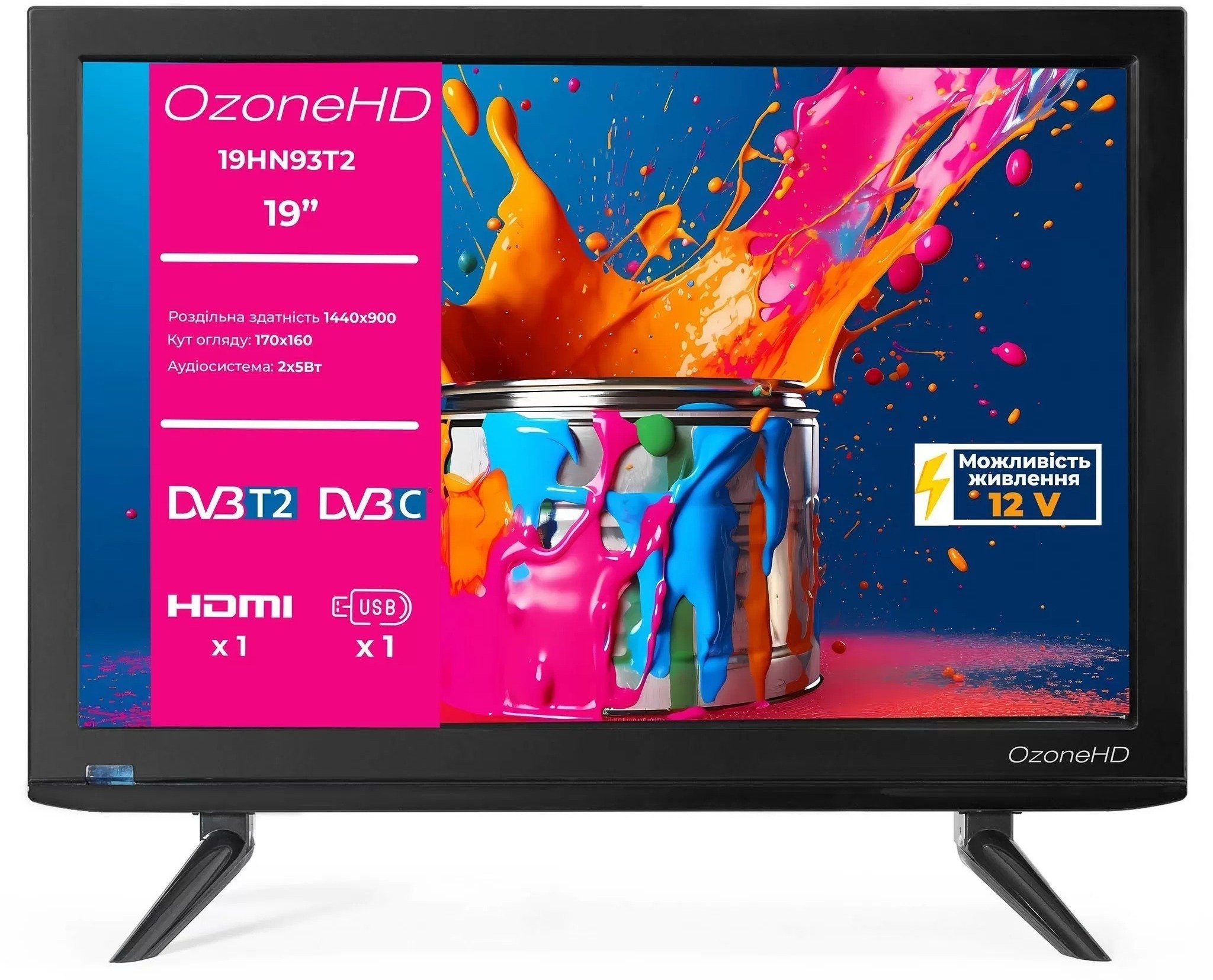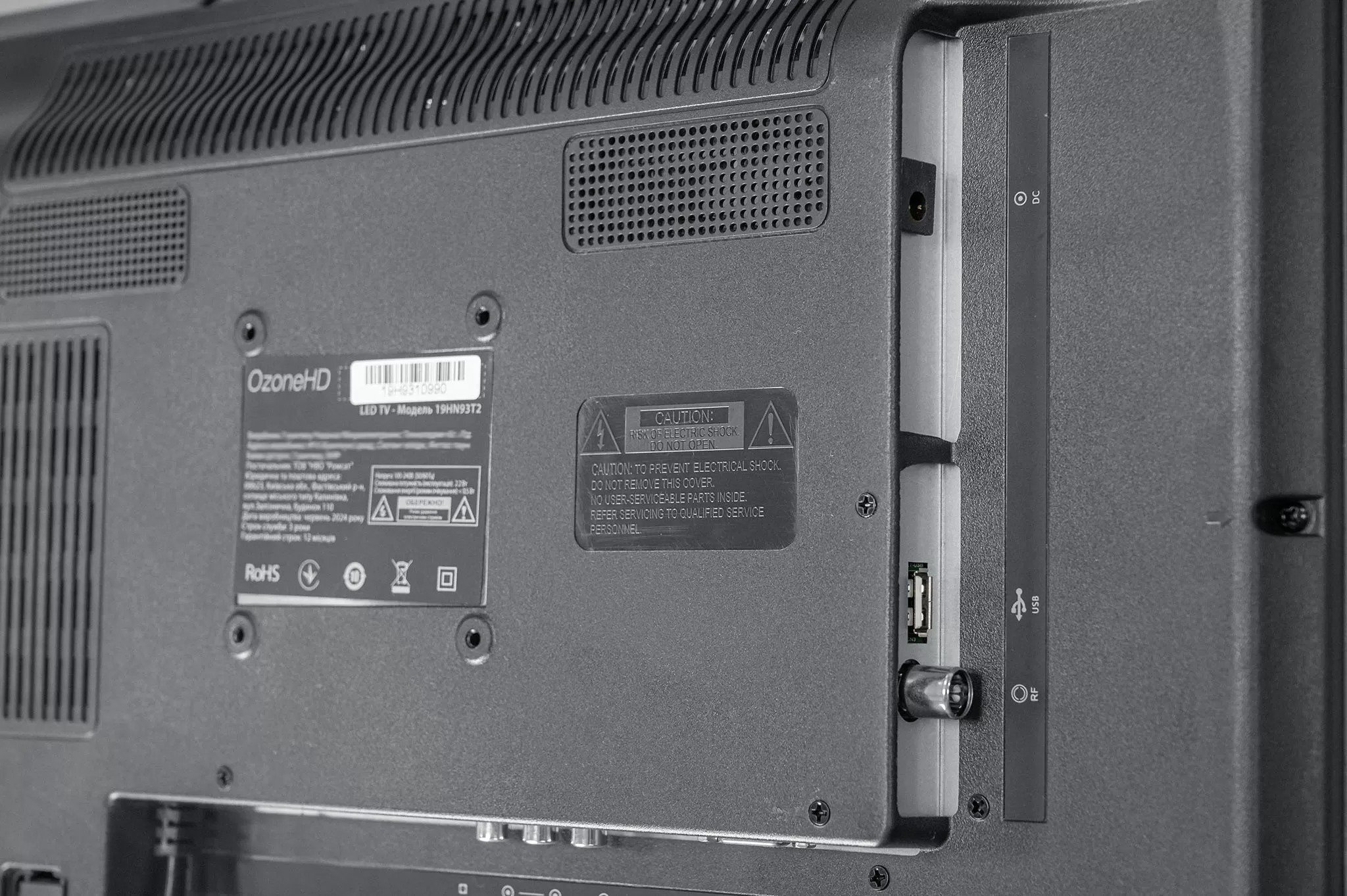 Серед портів — HDMI, VGA та USB, тому до телевізора легко підключити ноутбук, ігрову приставку або будь-який інший пристрій. Кріплення VESA 75×75 мм дозволяє розмістити його на стіні, а стандартні ніжки підійдуть для встановлення на поличці чи тумбі. Окрема перевага моделі — підтримка живлення від постійного струму 12В, завдяки чому телевізор можна використовувати в кемпері чи на дачі з сонячною панеллю. Це робить OzoneHD 19HN93T2 одним із небагатьох бюджетних телевізорів із такою універсальністю.