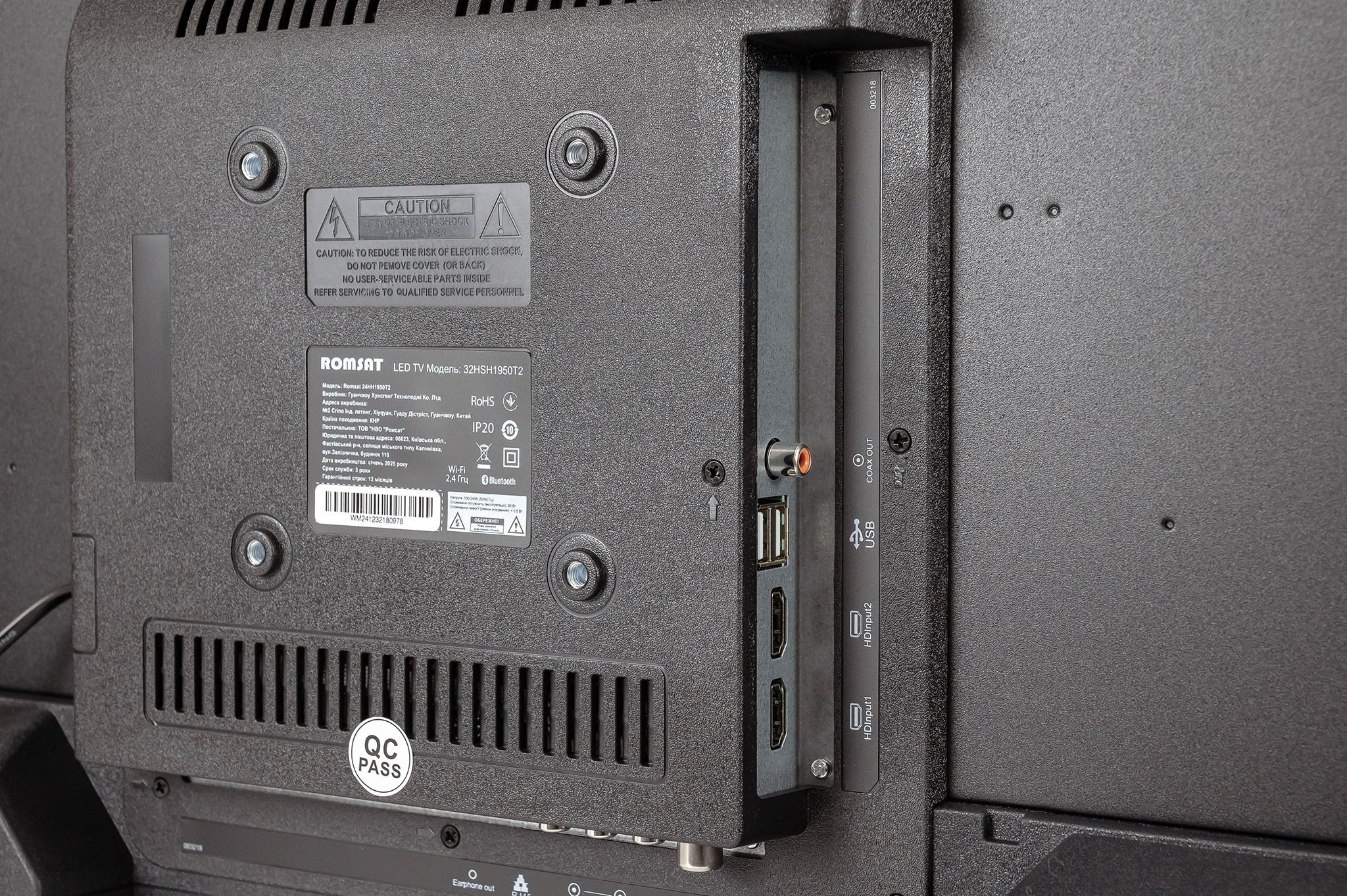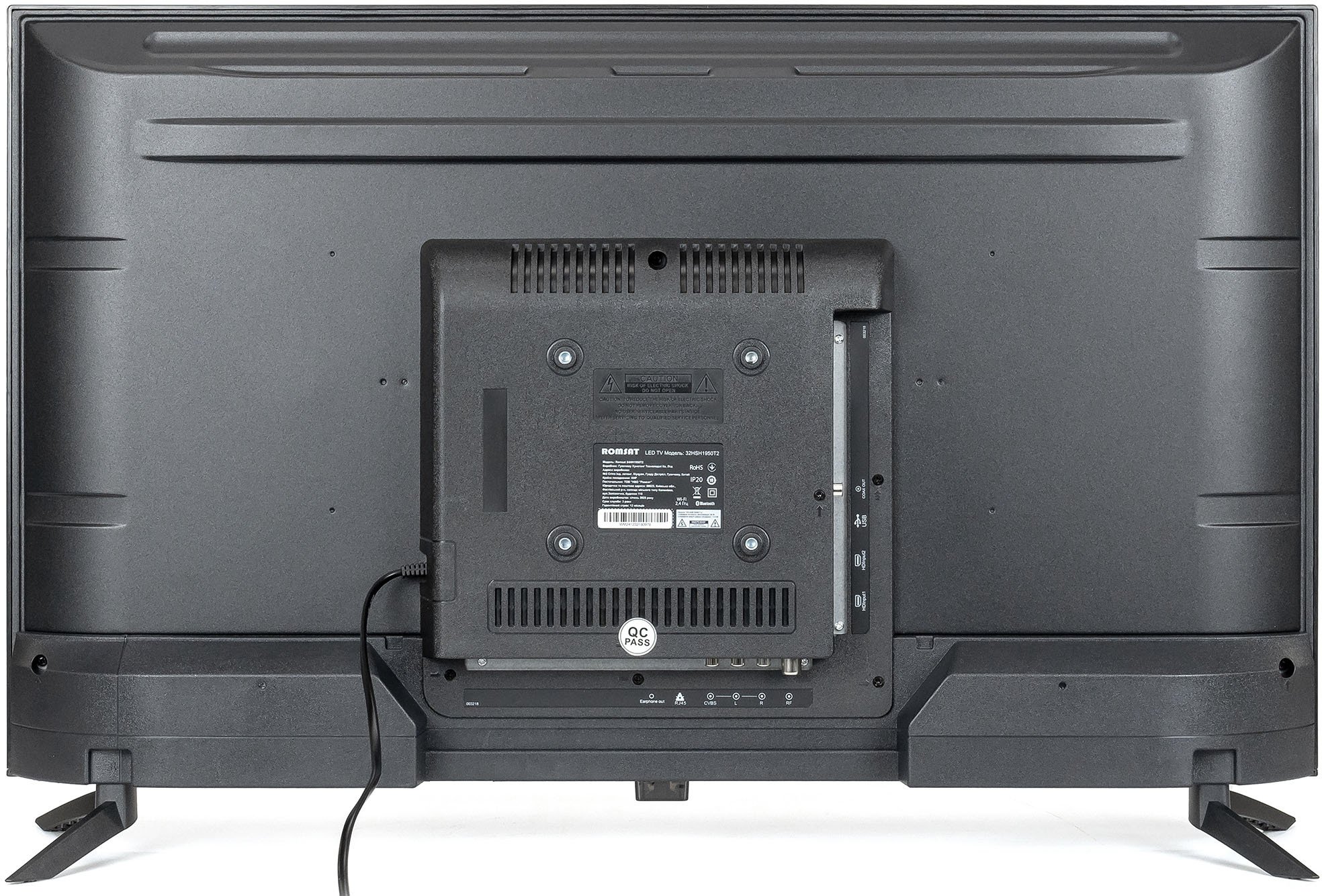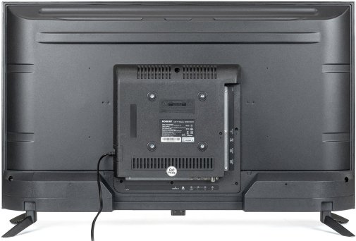 Два вбудованих динаміки сумарною потужністю 20 Вт відтворюють чистий і деталізований звук, достатній для комфортного перегляду без зовнішньої акустики. Для підключення зовнішніх пристроїв передбачено два порти HDMI (ігрові консолі, ноутбуки, медіаприставки), два USB-порти для перегляду відео та фото з флешки, а також AV-вхід, коаксіальний вихід і 3,5 мм роз'єм для навушників. Телевізор можна як встановити на підставку-ніжки, так і закріпити на стіні через стандартне кріплення VESA 100×100 мм — це робить його зручним рішенням для будь-якого простору.