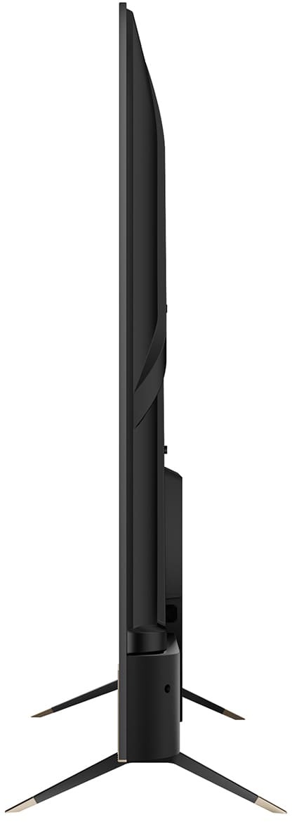 Корпус телевізора виготовлений з анодованого металу — тонкий, з мінімальними рамками та прихованою системою кабельного менеджменту. Телевізор можна встановити на підставку або повісити на стіну, де він виглядатиме як витончена картина. Для комфортного перегляду в серії реалізована система Multiplay Eye Care — багаторівневий захист очей, що зменшує навантаження при тривалому перегляді як для дорослих, так і для дітей. Матове покриття екрана зменшує відблиски, а кут огляду 178° по горизонталі і вертикалі дозволяє бачити чітке зображення з будь-якої точки кімнати.