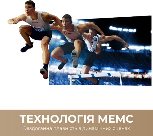 Частота оновлення екрана 120 Гц (технологія HSR) забезпечує плавний рух у кадрі без розмиття та ривків — особливо це відчутно під час перегляду спортивних трансляцій, бойовиків або динамічних ігрових сцен. Додатково працює система Vivid Motion, яка аналізує траєкторію об'єктів і додає проміжні мікрокадри там, де потрібно. Для геймерів передбачено режим ALLM із затримкою вводу близько 8 мс, порт HDMI 2.1 для підключення сучасних консолей, а також зручний ігровий інтерфейс із можливістю моніторингу частоти кадрів, активацією прицілу на екрані та вибором HDR-профілю — усе в кілька натискань, не виходячи з гри.
