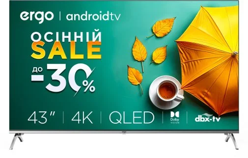 Телевізор QLED Ergo 43GUS8555 (Smart TV, Wi-Fi, 3840x2160)