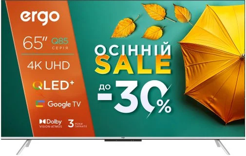 Телевізор QLED Ergo 65JUQ85 (Google TV, Wi-Fi, 3840x2160)