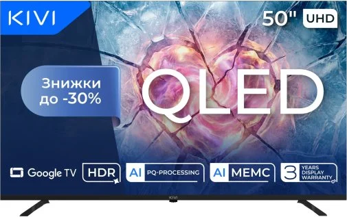 Kivi 50U820KB — це компактний QLED-телевізор з UHD-екраном, платформою Google TV та підтримкою сучасних форматів зображення й звуку. Він ідеально підходить для невеликих приміщень, де потрібна якісна картинка, зручний смартфункціонал і надійне підключення до різних джерел контенту.