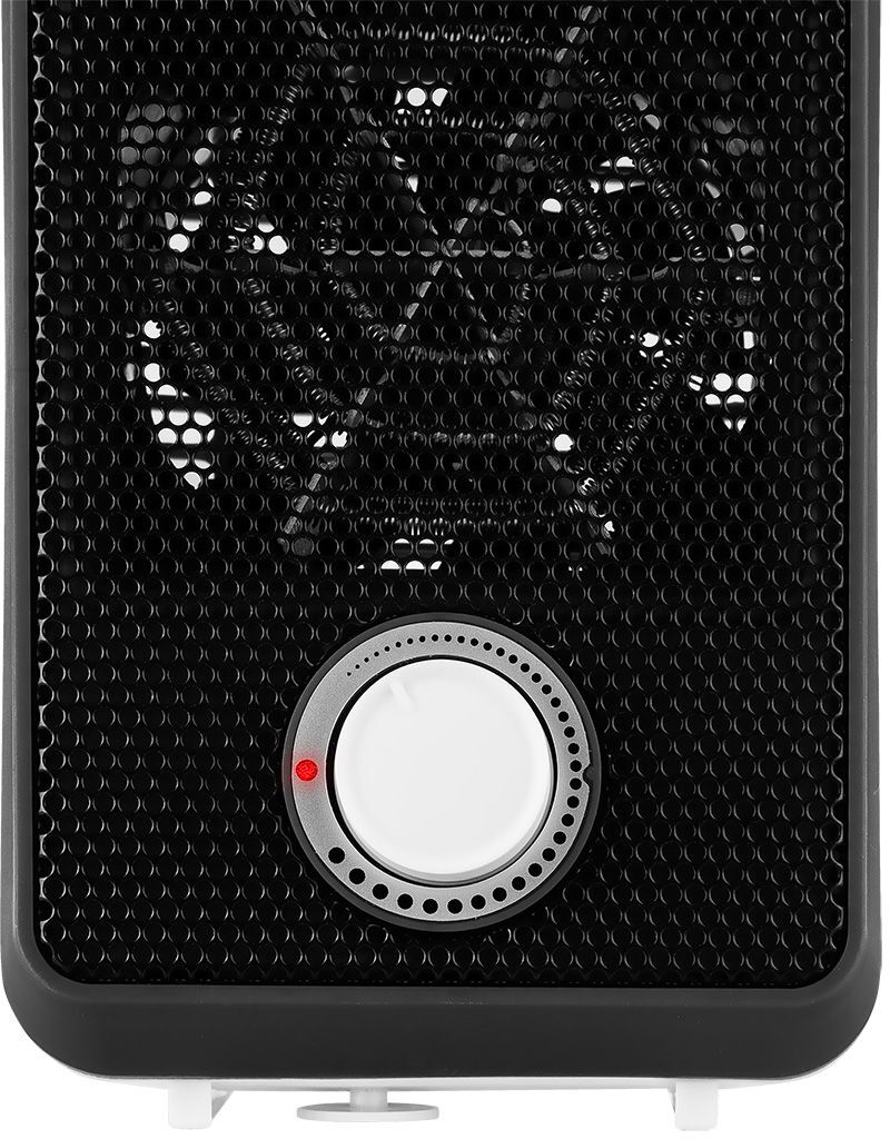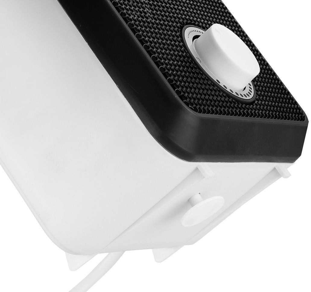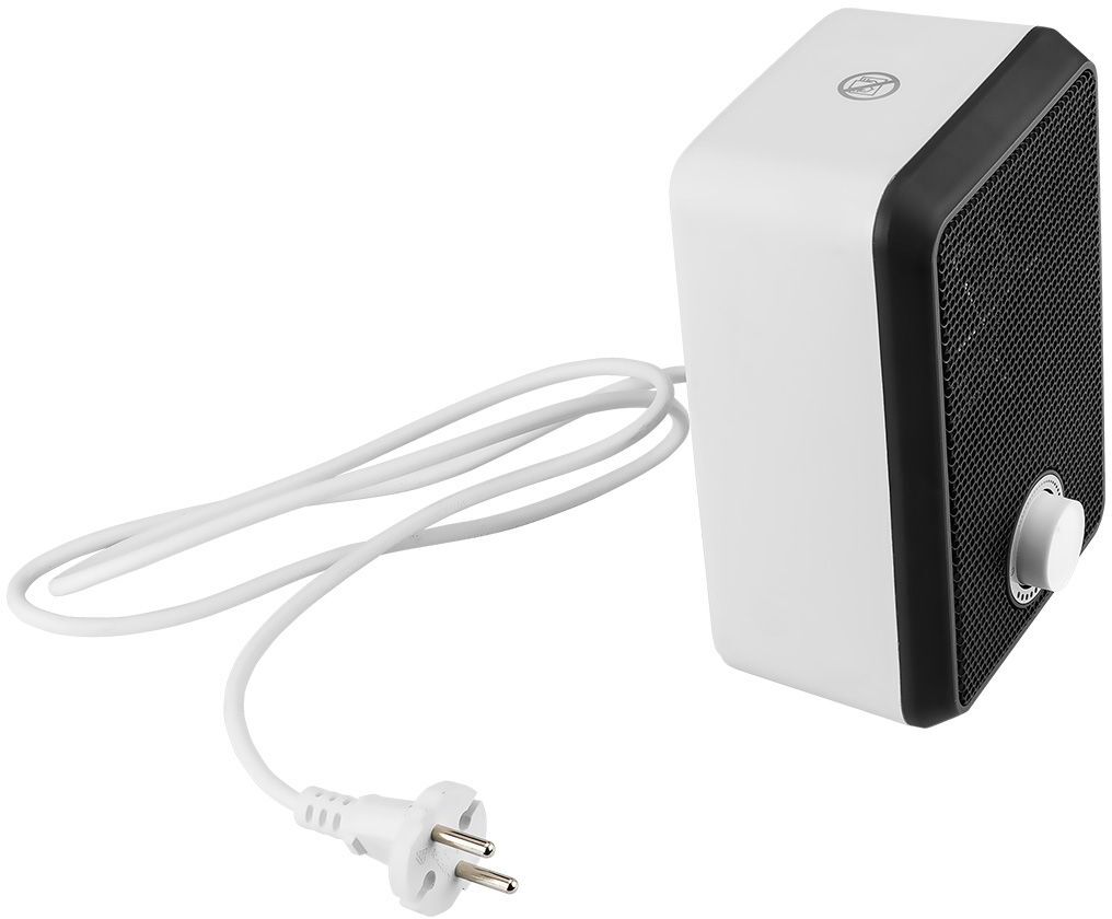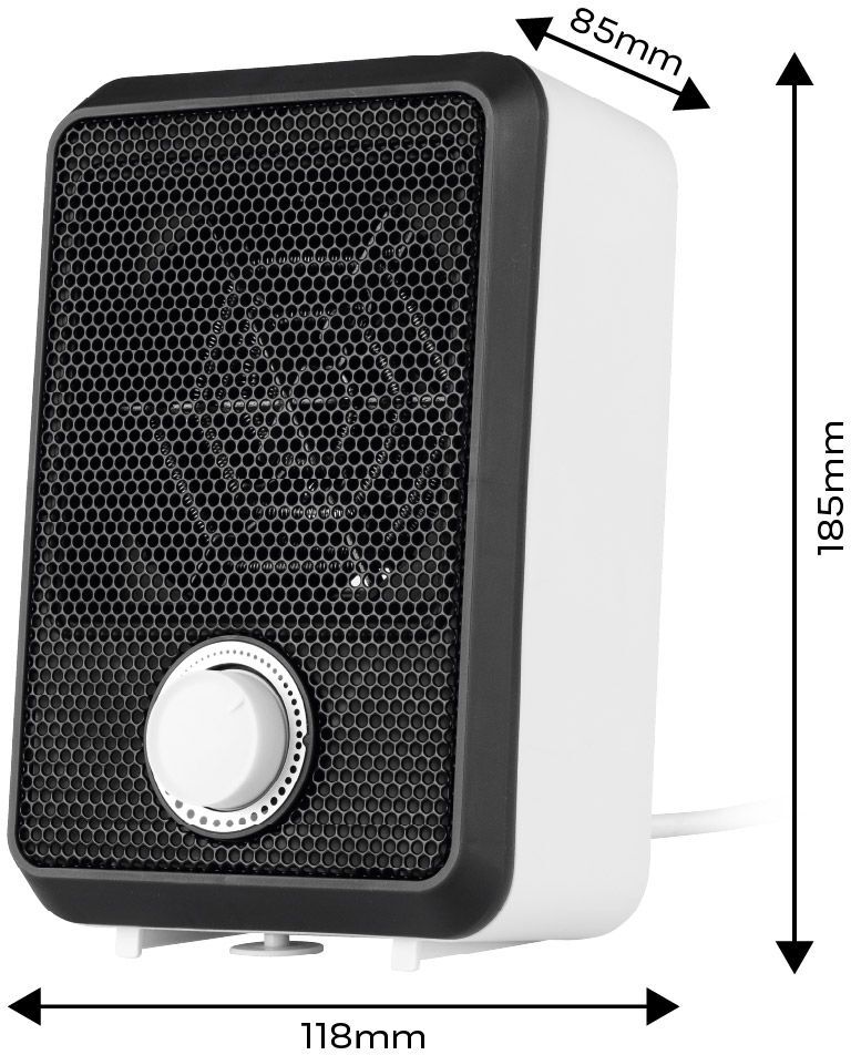 Для безпеки в моделі реалізовано датчик перекидання, що автоматично вимикає прилад, якщо він опиниться у нестійкому положенні. Зручно стежити за роботою допомагає світловий індикатор, а окремий вимикач ON/OFF робить керування інтуїтивним. Завдяки компактним розмірам 85 × 118 × 185 мм і вазі всього 0,62 кг тепловентилятор легко розміщується на столі та переноситься між приміщеннями. Кабель 1,25 м забезпечує комфортне підключення до розетки, навіть якщо вона знаходиться на відстані.
