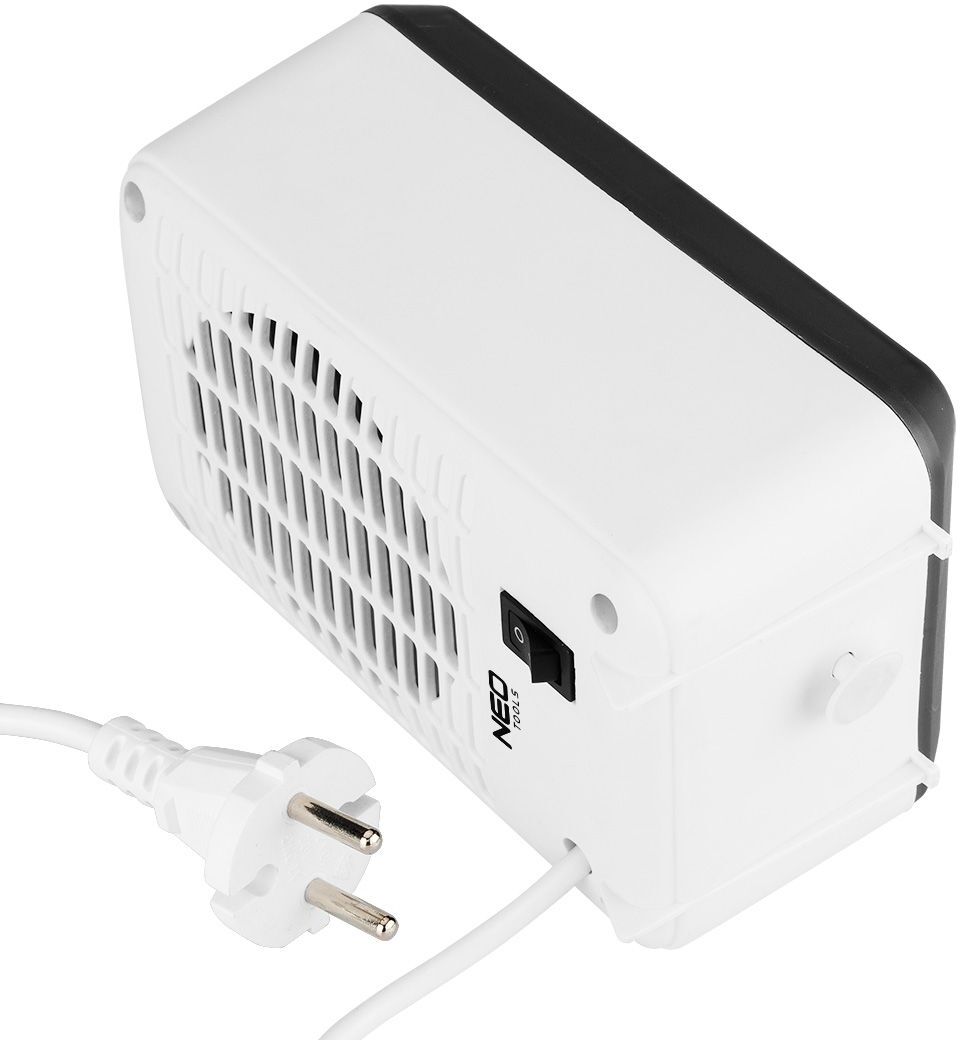 Тепловентилятор Neo Tools 90-129 — це компактний настільний обігрівач потужністю 600 Вт, створений для швидкого та точкового прогрівання робочої зони чи невеликого кута кімнати. Він працює від стандартної мережі 230 В ~ 50 Гц і використовує вбудований термостат, який допомагає підтримувати стабільну температуру без постійних налаштувань.