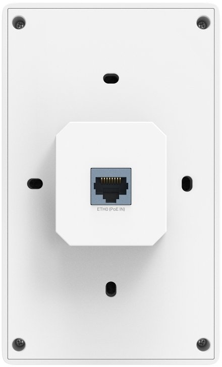 Дизайн EAP725-WALL враховує зручність монтажу та інтеграції в інтер'єр: компактні розміри 143 × 86 × 40 мм дозволяють легко встановлювати пристрій на стіну за допомогою гвинтів з комплекту. Внутрішні антени (2×4 дБі на 2,4 ГГц та 2×5 дБі на 5 ГГц) забезпечують ефективне покриття без зайвих елементів, а вбудований Bluetooth V5.2 спрощує налаштування. Апаратна частина включає вхідний порт 2.5G PoE для живлення, наскрізний порт 2.5G PoE та два гігабітні RJ45-виходи, що дозволяють підключати локальні пристрої, такі як IP-телефони чи принтери, безпосередньо до точки доступу. Живлення через стандарт 802.3at/bt PoE з споживанням до 17 Вт робить EAP725-WALL енергоефективним і гнучким у розгортанні.