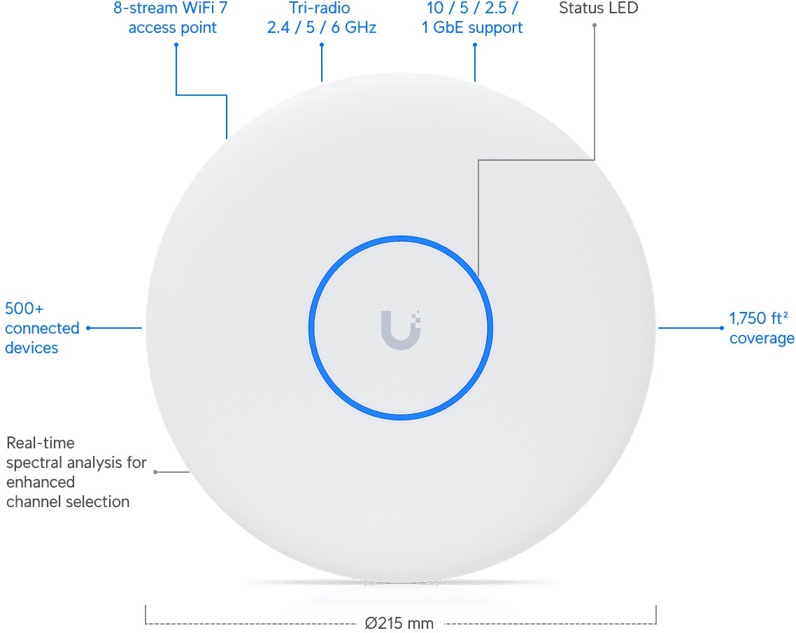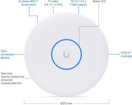 Точка доступу Wi-Fi Ubiquiti UniFi U7 Pro XGS — це передове рішення для створення високошвидкісних бездротових мереж у великих офісах, закладах чи вдома. Завдяки підтримці Wi-Fi 7 і потужним технічним характеристикам, вона забезпечує швидке та стабільне з’єднання для десятків пристроїв.