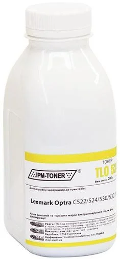 Тонер для заправки лазерних картриджів від компанії IPM для друкувальних пристроїв Lexmark. Колір даного витратного матеріалу – жовтий. Його якість на високому рівні, тому отримані відбитки будуть чіткими та яскравими. Реалізовується у бутлі ємністю 200 грамів. Призначений для принтерів моделі Optra C534.
