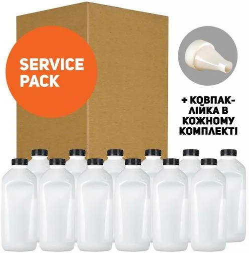 Набір сумісних тонерів для друкувальних пристроїв бренду HP. До комплекту входить 12 флаконів ємністю по 833 грами кожен. Загальна вага набору - 10 кг. Заповнені ємності чорним тонером. Для того, щоб заправляти картриджі було легко, виробник додав спеціальний ковпак-лійку. Такий тонер буде досить економним, а по якості не поступається оригінальному витратному матеріалу.