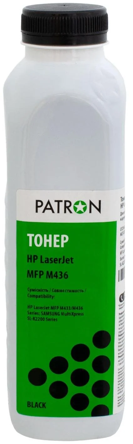 Тонер від виробника PATRON для HP LaserJet MFP M436. Вирізняється хорошою якістю друку й доступною ціною. Рекомендований для друку великих обсягів стандартної документації. Місткість флакона становить 160 г. Колір тонера – чорний.