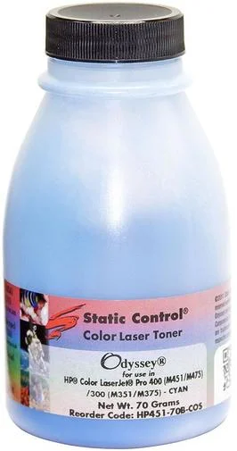 Більшість оригінальних картриджів можна перезаправляти в сервісних центрах. Компанія Static Control розробила сумісний тонер для друкувальних пристроїв компанії HP, а саме для всіх вказаних моделей принтерів та копірів. Ємність бутля – 70 грамів. Колір тонера – синій. Такий витратний матеріал більш економний, але в якості не програє оригінальному.