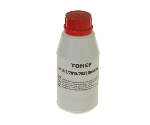 Універсальний тонер чорного кольору від виробника Static Control, який використовується у лазерних принтерах. Відмінно підходить до значної кількості пристроїв, а саме: Canon LBP- 1000 / 1210 / 3000; LaserBase MF5580dn / MF5840dn; HP LaserJet 1000 / 1010 / 1012 / 1015 / 1018 / 1020 / 1022 / 1300 / 2100 / 3015 / 3020 / 3030 / 3050 / 3052 / 3055 / M1005 / P2014 / P2015. Вага тонера у пляшечці складає 100 г.
