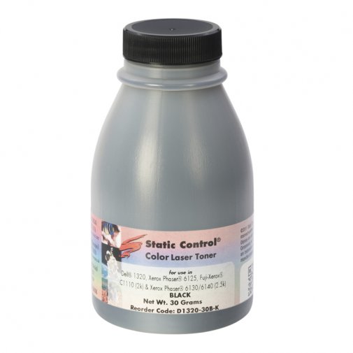 Тонер для заправки лазерних картриджів від компанії Static Control для друкувальних пристроїв Xerox Phaser-6125, Xerox Phaser-6140. Колір даного витратного матеріалу – чорний. Його якість на високому рівні, тому отримані відбитки будуть чіткими та яскравими. Поставляється у пакуванні вагою 30 г.