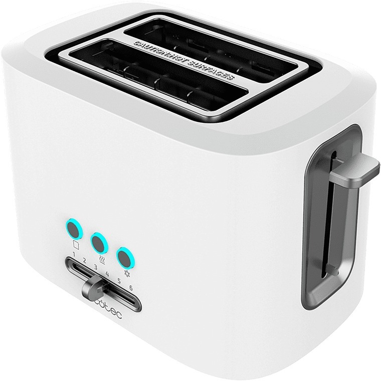 Тостер оснащений 6 рівнями підсмажування, що дозволяють регулювати ступінь золотистої скоринки відповідно до ваших вподобань. Крім того, є три додаткові функції: розігрів, миттєве розморожування та скасування, які роблять процес приготування більш гнучким та зручним.