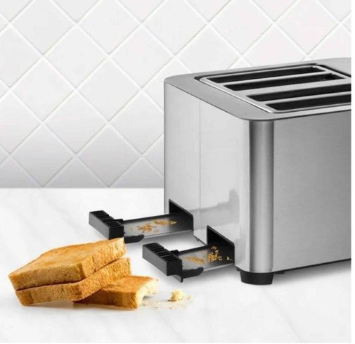 Тостер оснащений чотирма широкими слотами, які дозволяють одночасно готувати до чотирьох тостів. Корпус виготовлений із нержавіючої сталі, що забезпечує довговічність і стійкість до корозії, а також додає преміальний вигляд, який гармоніює з сучасними кухонними інтер’єрами. Розміри тостера становлять приблизно 250 х 315 х 315 мм, а вага — близько 1.91 кг, що робить його компактним і зручним для розміщення на кухонній поверхні. Потужність пристрою становить 1500 Вт, що забезпечує швидке нагрівання та рівномірне підсмажування хліба.