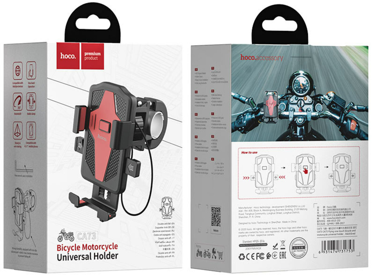 Hoco CA73 Flying — це універсальний і міцний велотримач, який надійно фіксує ваш смартфон під час поїздок на велосипеді, мотоциклі чи навіть прогулянок з дитячою коляскою. Завдяки діаметру кріплення він легко встановлюється на будь-яке кермо, а в комплекті йде шестигранний ключ для швидкого монтажу.