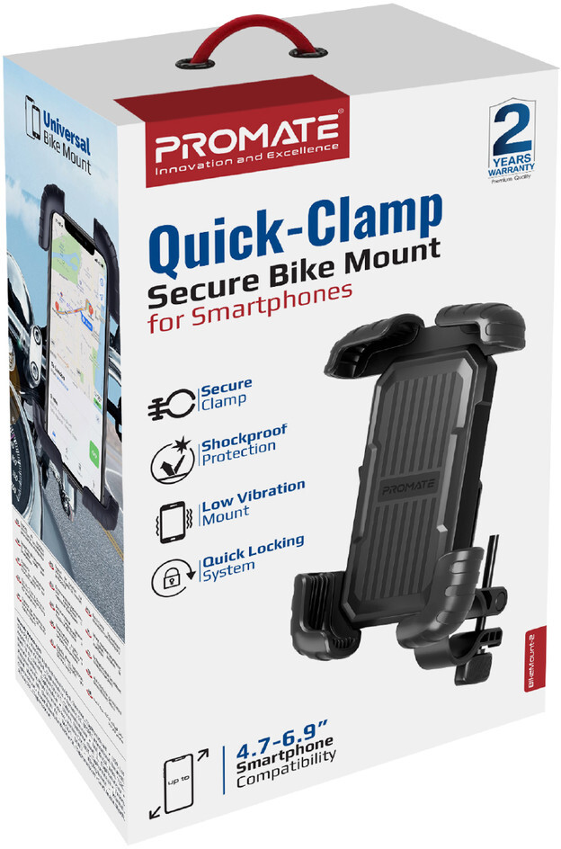 Тримач Promate BikeMount-2 — це вдосконалена версія надійного велосипедного кріплення для смартфона, яке забезпечує міцну фіксацію навіть на нерівних дорогах з ямами. Ви зможете комфортно користуватися навігатором, перевіряти повідомлення чи керувати музикою під час поїздки, не відволікаючись від керма.