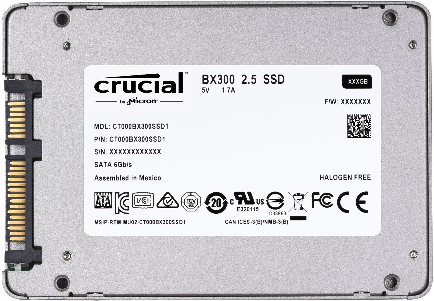 Crucial BX300 - твердотільний накопичувач, який дозволить наділити пристрій швидкодією та забезпечить систему миттєвим запуском. У порівнянні із жорстким диском, SSD-накопичувач демонструє більшу пропускну здатність, швидкість зчитування складає 555 Мб на секунду, а запису - 510 Мб/с. Crucial BX300 не створює звуків при роботі, адже не має рухомих механічних частин, а отже він дозволяє повністю сфокусуватися на роботі. Диск легко встановлюється, а ткаож є більш стійким до вібрацій та ударів.