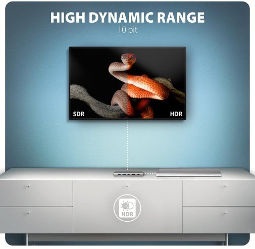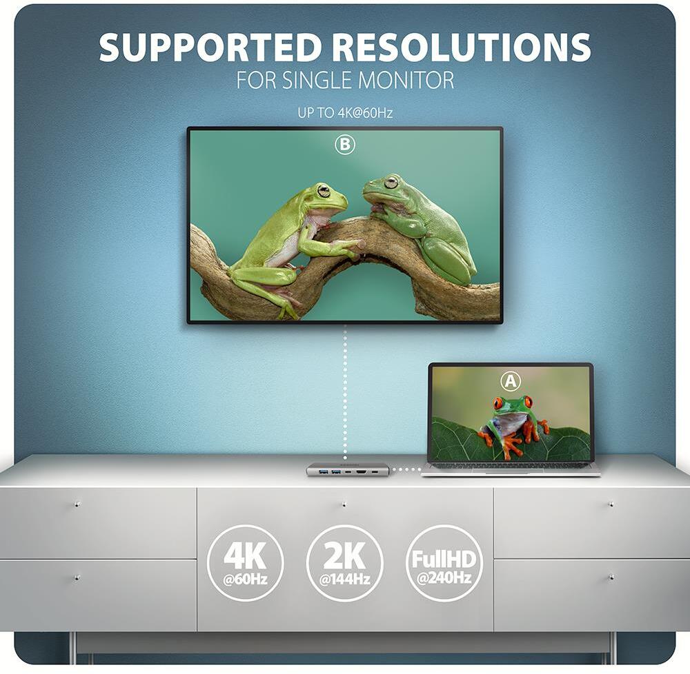 HDMI-вихід забезпечує чітке зображення 4K@60 Гц з HDR, 2K/120 Гц або FullHD/240 Гц — ідеально для роботи, фільмів чи ігор на великому екрані. Вбудований гігабітний LAN-порт RJ-45 додає стабільне дротове з’єднання зі швидкістю до 1000 Мбіт/с там, де Wi-Fi підводить.