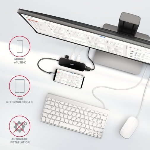 HDMI-вихід підтримує роздільність до 4K (4096х2160) при 30 Гц, WQHD (2560х1440) при 60 Гц, а також Full HD при 60, 100 і 120 Гц. Підтримуються HDCP 1.4 і 2.3, до 8-канальний звук LPCM та стислі аудіоформати — хаб однаково добре підходить як для підключення монітора, так і для виведення зображення на телевізор або проєктор. Важлива умова: USB-C порт пристрою повинен підтримувати DisplayPort Alternate Mode або Thunderbolt 3.