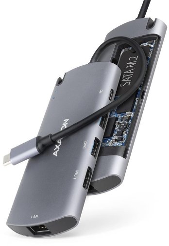Особливістю моделі є вбудована зовнішня металева коробка для SATA M.2 SSD-дисків розміром від 42 до 80 мм, яка підтримує SuperSpeed USB-C інтерфейс. Користувач може легко встановити диск для додаткового сховища, досягаючи швидкості передачі до 5 Гбіт/с, що ідеально для резервного копіювання чи роботи з великими файлами на ходу.