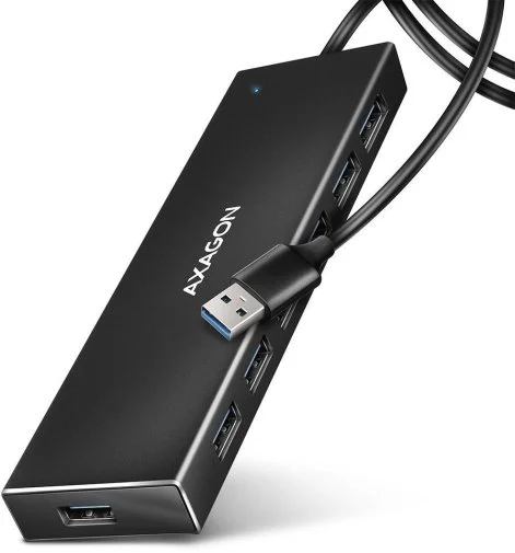 AXAGON HUE-F7A — це надійний і високопродуктивний USB-хаб із семи портів, який створено для користувачів, що потребують стабільного підключення численних пристроїв одночасно. Завдяки підтримці стандарту USB 3.2 Gen 1 він забезпечує швидкість передачі даних до 5 Гбіт/с і підходить як для настільних ПК, так і для ноутбуків. Це рішення ідеально поєднує продуктивність, довговічність і стиль, дозволяючи ефективно організувати робоче місце без зайвих адаптерів і перехідників.
