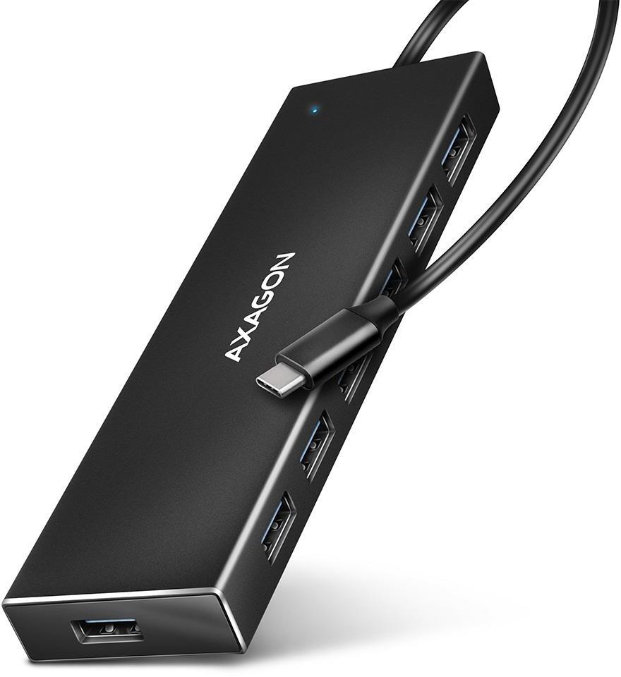 AXAGON HUE-F7C — це високошвидкісний USB-хаб професійного рівня, створений для користувачів, яким потрібно підключити одночасно кілька пристроїв без втрати продуктивності. Він підтримує стандарт USB 3.2 Gen 1, забезпечуючи швидкість передачі даних до 5 Гбіт/с, і пропонує одразу сім портів для роботи з периферією, накопичувачами, телефонами чи планшетами. Цей компактний і витривалий пристрій стане незамінним помічником як у стаціонарному офісі, так і в мобільному сценарії роботи.