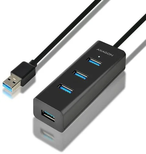 AXAGON HUE-S2BL — це чотирипортовий USB 3.2 Gen 1 (USB 3.0) хаб, який поєднує високу швидкість передавання даних, підтримку швидкого заряджання та можливість роботи з додатковим живленням. Завдяки довгому кабелю (1.2 м) він ідеально підходить для настільних комп’ютерів і робочих місць, де потрібна зручність розміщення.