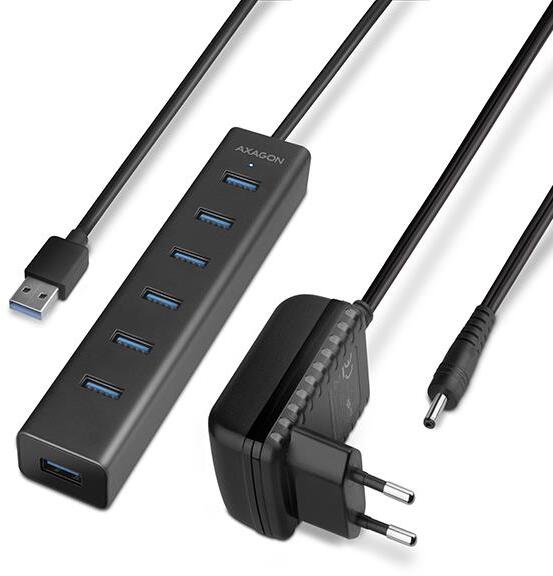 AXAGON HUE-SA7BP — це функціональний USB 3.2 Gen 1 (USB 3.0) хаб, який поєднує розширені можливості підключення з потужною системою живлення та підтримкою швидкого заряджання для всіх семи портів. Завдяки компактному корпусу з алюмінію, стабільному адаптеру живлення та високій пропускній здатності цей пристрій ідеально підходить як для офісу, так і для домашнього робочого місця.