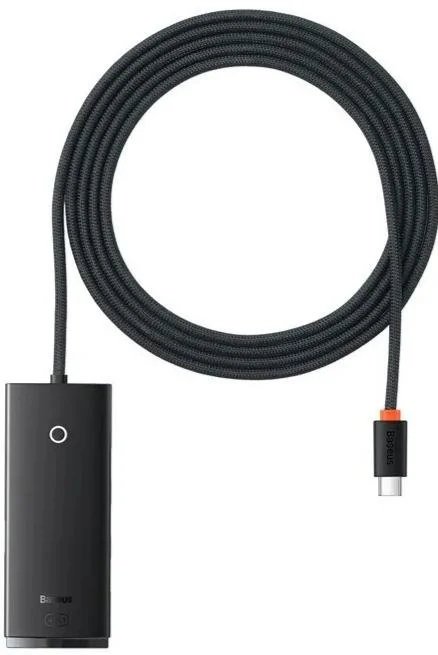 Компактний хаб-перехідник від Baseus для пристроїв з інтерфейсом USB. Сумісний з більшістю сучасних ґаджетів, включаючи смартфони та ноутбуки. Він не вимагає встановлення додаткового програмного забезпечення, підтримує актуальні операційні системи.