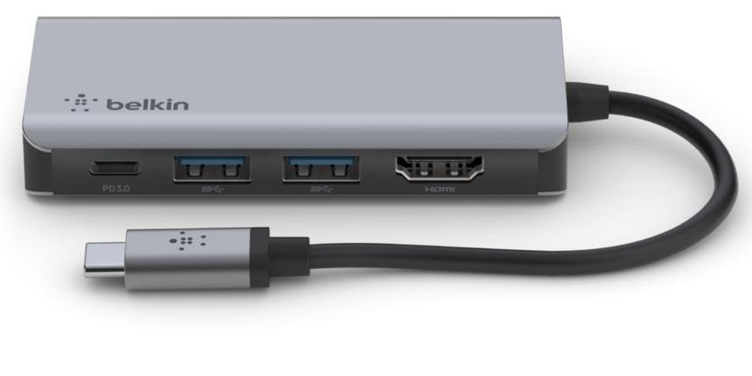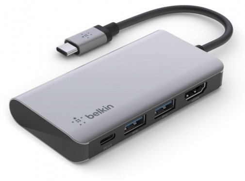 Belkin USB-C USB-C 4-in-1 Multiport Adapter - USB-хаб для зарядки та підключення до ноутбука периферійних пристроїв. Забезпечує доступ до портів, які не використовуються в сучасних поколіннях ноутбуків. Пропонує використовувати один порт USB-C, щоб отримати порт HDMI, 2 порти USB-A і порт USB-C PD. Підтримує наскрізну зарядку до 100 Вт, позбавляючи від необхідності вибирати між розширенням портів і енергією. Тонкий, компактний і зручний для подорожей дизайн адаптера ідеально підходить для тих, у кого кілька робочих станцій або хто хоче прибрати безлад на своєму столі. Легко підключає ваш ноутбук до HD-монітора, проектора або іншого дисплею за допомогою порту HDMI 1.4, забезпечуючи роздільну здатність до 4K при 30 Гц.