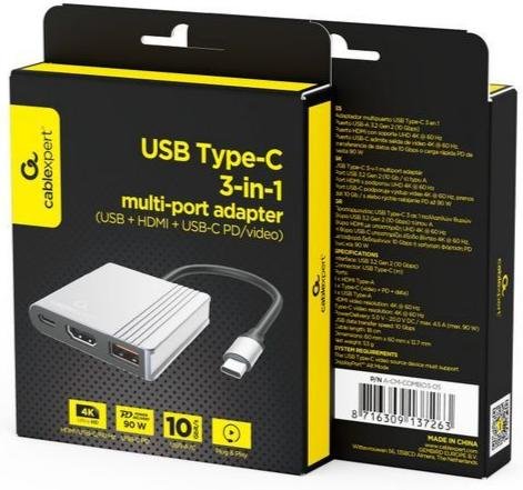 USB-хаб Cablexpert 3in1 USB/HDMI/PD — це компактний мультипортовий адаптер, який значно розширює можливості вашого пристрою з портом USB Type-C. Він дозволяє одночасно підключати монітор, периферію та зарядку, роблячи роботу набагато зручнішою.
