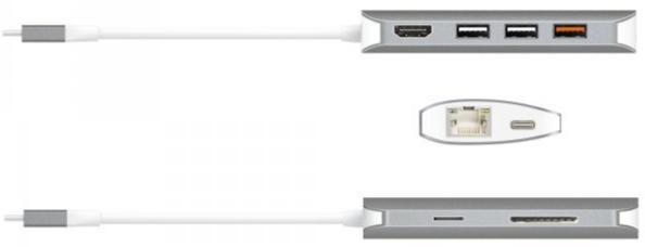 Завдяки USB-C Power Delivery 3.0 адаптер забезпечує заряджання в обох напрямках при підключенні до адаптера живлення USB-C. Він також забезпечує прямий доступ до дротової мережі та карт пам'яті SD і microSD.