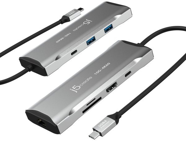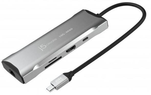 Міні-докстанція J5create JCD393 4K60 Elite USB-C 10 Гбіт/с, оснащена усіма необхідними портами та обладнана сучасним чіпом USB-C E-Mark для сумісності з хостами та пристроями USB4, Thunderbolt 3 і Thunderbolt 4.