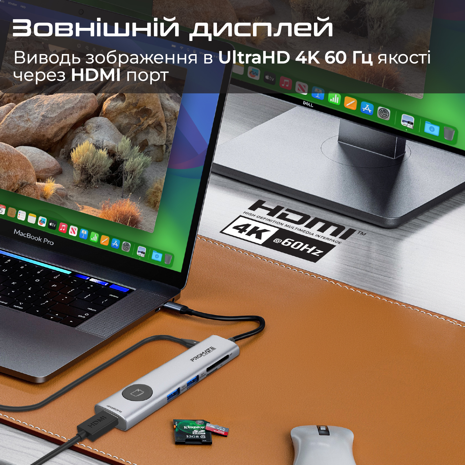 Windows, Mac OS, iOS, Android. Не потребує встановлення програмного забезпечення або драйверів, тобі потрібен лише вільний USB-С порт.