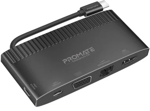 USB-хаб Promate MediaHub-C6 Black – це універсальний мультимедійний пристрій, який перетворює один USB-C порт на повноцінну робочу станцію для ноутбука чи ультрабука. Компактний алюмінієвий корпус легко поміщається в кишеню, а кабель забезпечує мобільність без зайвих дротів. Виготовлений з анодованого алюмінію, хаб надійно захищає від перегріву та механічних пошкоджень, гарантуючи довговічність у щоденному використанні.