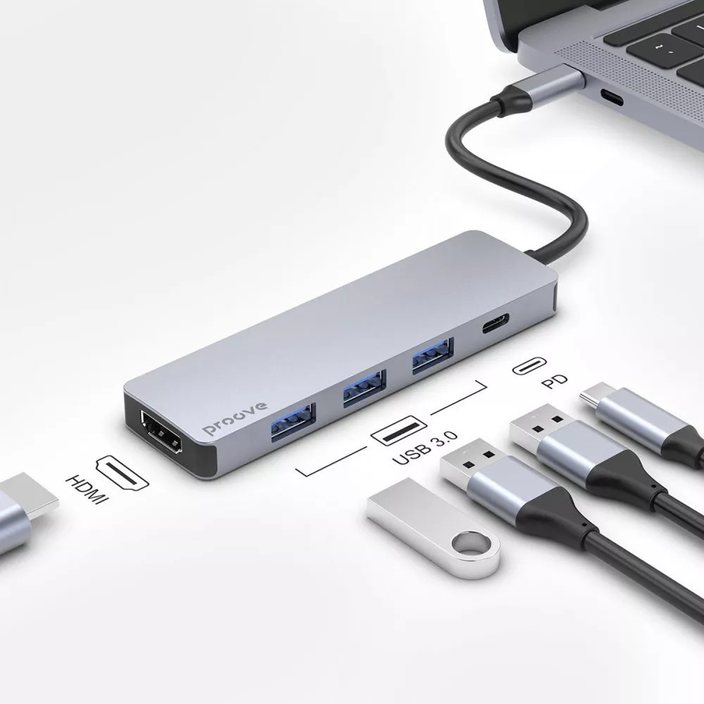Головна перевага Proove Iron Link 5 in 1 — три порти USB 3.0 зі швидкістю передачі даних до 5 Gbps. Це означає, що ви можете одночасно підключити флешку, зовнішній жорсткий диск, мишку, клавіатуру або будь-який інший USB-пристрій без втрати швидкості роботи. Порт Type-C з підтримкою швидкої зарядки PD 3.0 потужністю до 100W дозволяє одночасно заряджати ноутбук — так що навіть під час активного використання хаба ваш пристрій залишатиметься живленим.