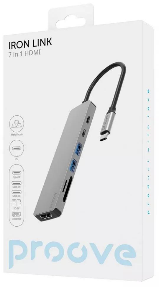 Proove Iron Link 7 in 1 — компактний USB-хаб для ноутбука, який перетворює один роз'єм Type-C на сім незалежних портів. Це універсальний розширювач портів для MacBook, Windows-ноутбуків і будь-яких пристроїв з USB-C, що підтримує підключення монітора, флешок, карт пам'яті та одночасну зарядку. Якщо ви шукаєте надійний хаб Type-C 7 в 1 для роботи чи навчання — це саме той варіант.