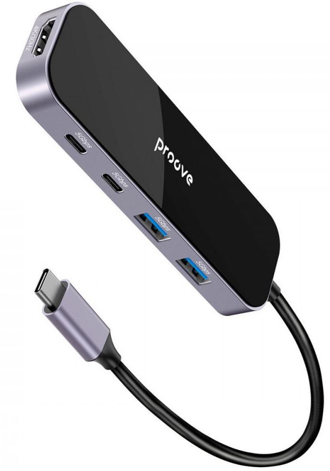 Для тих, хто шукає хаб з портом HDMI та підтримкою 4K, Proove Shadow стане відмінним вибором. Вбудований HDMI-вихід підтримує роздільну здатність 3840×2160 пікселів (4K) при частоті 30Hz — достатньо для підключення зовнішнього монітора, телевізора чи проєктора. Два порти USB 3.1 та два порти Type-C забезпечують швидкість передачі даних до 5 Гбіт/с кожен, що дозволяє швидко копіювати файли, підключати флешки, SSD-накопичувачі та інші периферійні пристрої одночасно.