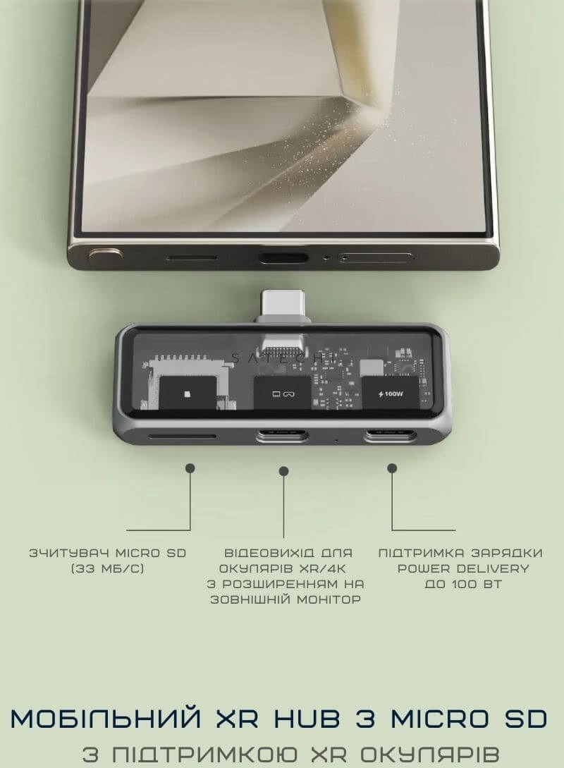 Satechi Mobile XR Hub with microSD Reader Space — це універсальне та портативне рішення для мобільної продуктивності.