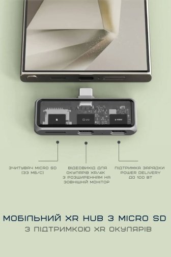 USB-хаб Satechi Mobile XR microSD Reader Space Grey — це компактний і універсальний аксесуар, створений для того, щоб максимально розкрити потенціал сучасних пристроїв, особливо в поєднанні з XR-окулярами, мобільним геймінгом, стримінгом та продуктивністю. Він ідеально підходить для тих, хто хоче перетворити смартфон, планшет чи ноутбук на повноцінну робочу чи розважальну станцію без зайвих адаптерів.