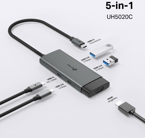 TP-Link UH5020C - це ідеальне рішення для тих, хто шукає універсальний розширювач підключень, де 4K HDMI поєднується з 100 Вт зарядкою та 5 Гбіт/с USB, перетворюючи обмеження портів на ідеальний хаб для стабільної продуктивності в динамічному цифровому середовищі без зайвих ускладнень.