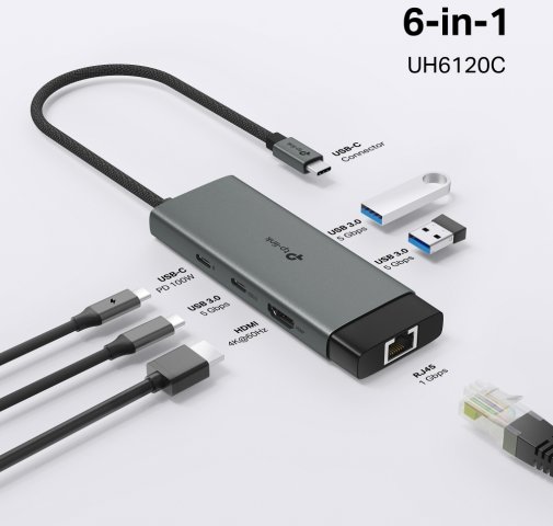 USB-хаб TP-Link UH6120C — це компактний і потужний пристрій, який розширює можливості вашого ноутбука чи ПК. За допомогою одного порту USB-C він пропонує шість додаткових підключень. Це ідеальне рішення для тих, хто потребує універсального підключення для роботи, розваг чи творчості.