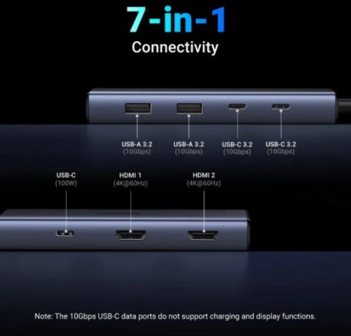 Ugreen CM498 оснащений двома портами HDMI, що дає можливість підключити два дисплеї та відтворювати на них відео 4К з частотою оновлення 60 Гц. Технологія MST дозволяє користувачам Windows розширювати свій робочий стіл на декілька дисплеїв.