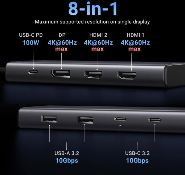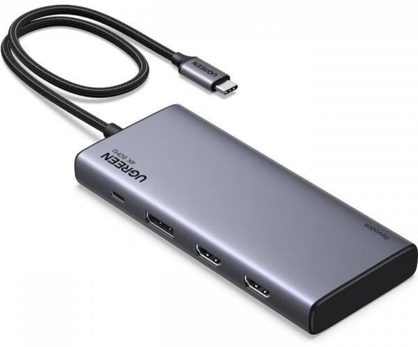 Багатофункціональна USB-C 3.2 док-станція Ugreen CM639 — пристрій, який легко розширить можливості вашого ПК, ноутбука чи смартфона. Підключайте до ноутбука відразу три монітори – від оснащений двома інтерфейсами HDMI та одним DisplayPort. Підтримка роздільної здатності 4K на частоті 60 Гц забезпечує бездоганну якість зображення та відео.